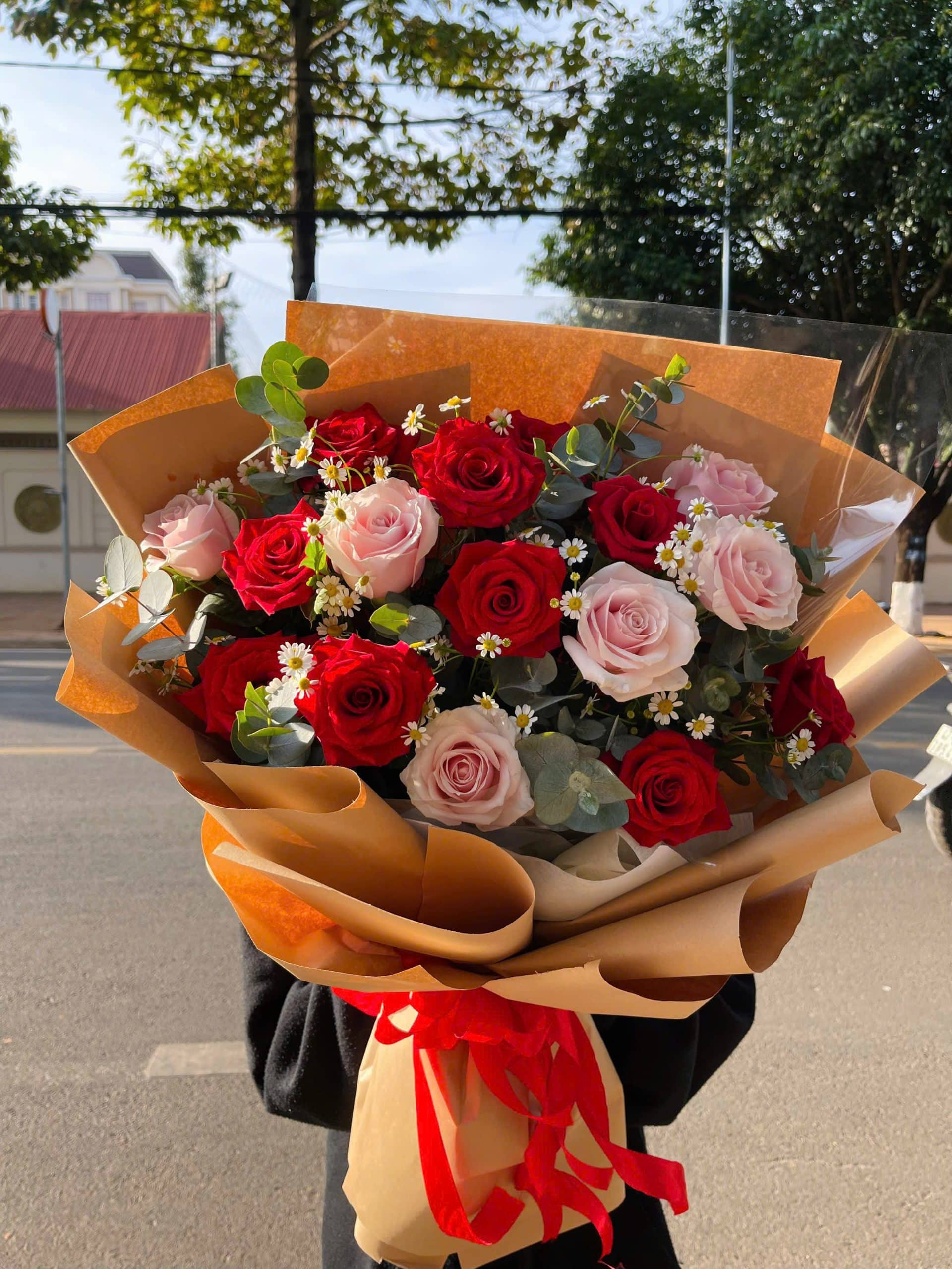 - Vì các loại hoa lá phụ sẽ có tùy vào thời điểm trong ngày, Lala Flower đảm bảo các loại hoa chính, màu sắc hoa có thể có chênh lệch đậm nhạt 1 phần và cách xếp hoa cũng như độ nở ko cố định khách nhé!
